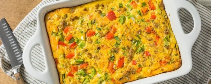 Pour la préparation, vous aurez besoin de saucisses ou de jambon, d’œufs, de farine, d’agent levant, de beurre, de poivrons, d’oignons verts, d’épices et d’un moule à pâtisserie.